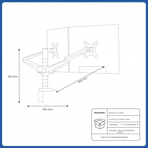 The UPERGO OA-4S Aluminum Desktop Double Arm Dual Monitor Holder Bracket is a versatile and ergonomic solution designed to support dual monitors up to 27 inches each. Constructed from durable aluminum alloy and ABS plastic, it offers a sturdy and sleek addition to any workspace. Each arm features full 360° rotation, tilt adjustment, and height flexibility, allowing users to position their monitors for optimal viewing angles and comfort. Ideal for professionals, gamers, and content creators seeking a flexible, space-saving, and organized workstation setup.
