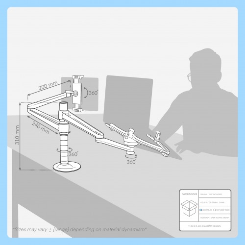 “A versatile and sturdy mount that keeps my workspace organized and positions both my laptop and tablet perfectly for work and creativity.”