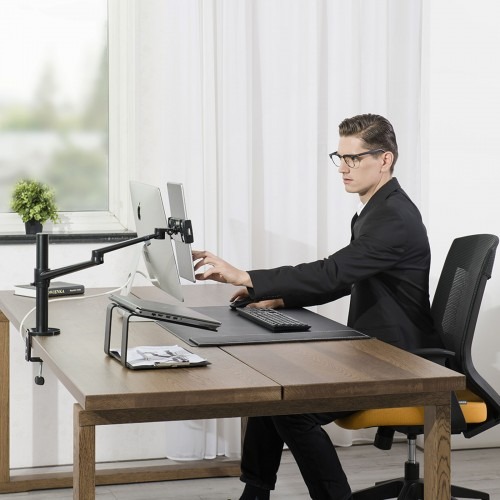 The UPERGO OL-1S Single Laptop/Monitor Desk Mount is a multifunctional and ergonomic mounting solution designed to hold either a monitor or a laptop securely on your desktop. Built from durable aluminum alloy and ABS materials, this mount combines strength and flexibility for everyday office or home use. It features full rotation, tilt, and height adjustments, allowing users to easily position their monitor or laptop at the perfect viewing angle. Ideal for improving posture, reducing clutter, and optimizing desk space, the OL-1S is suitable for professionals, creators, and multitaskers alike.