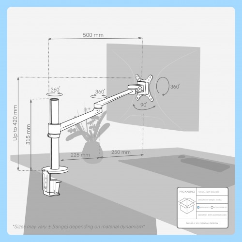 Adjustability | 360° Rotation, ±90° Tilt, Height Adjustable |