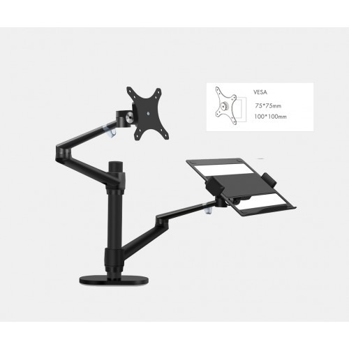 The UPERGO OL-3L Monitor and Laptop Desk Mount is a versatile 2-in-1 mounting solution designed to hold both a monitor and a laptop for an ergonomic and clutter-free workspace. Featuring a dual-arm gas-spring mechanism, it allows smooth height, tilt, and swivel adjustments for optimal viewing comfort. Ideal for professionals, creators, and gamers alike, the OL-3L helps you align your screens perfectly, saving valuable desk space while keeping cables neatly organized.