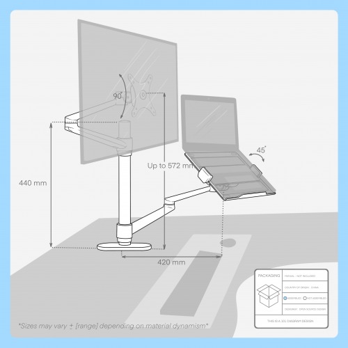 Tilt Range+80° to −90° (monitor arm), up to 45° (laptop arm)
