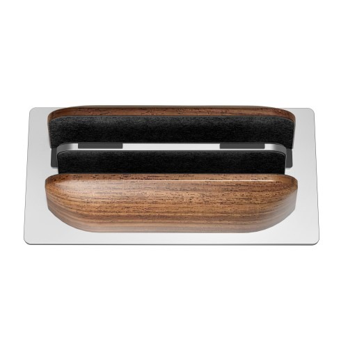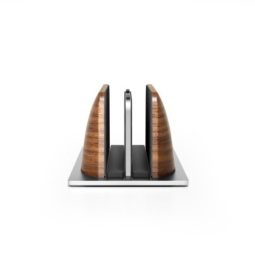 It saves desk space while enhancing your workstation aesthetics, featuring a combination of black walnut wood and aluminum for both style and durability.