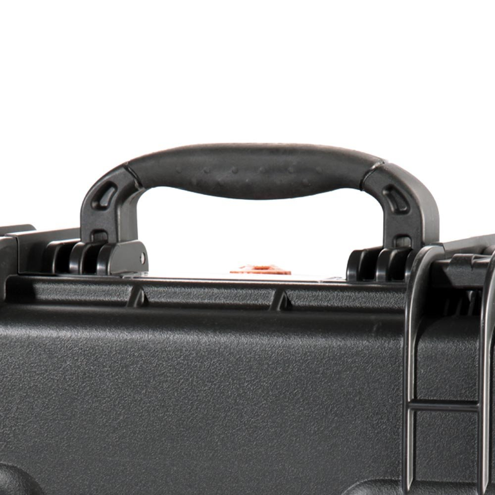 | Features | Customizable foam insert, automatic air pressure release valves, rolling handle, wheelstop, inner zip pocket, RFID-protected pocket, hidden storage compartments |
