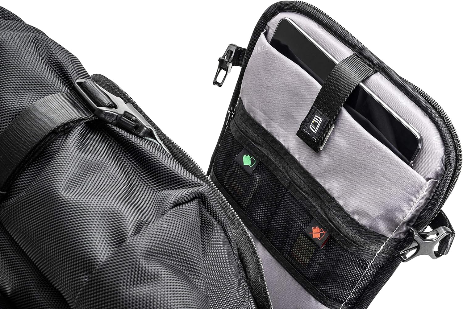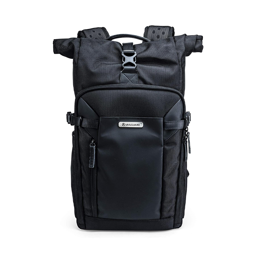 The Vanguard VEO Select 39RBM Backpack (Black) is a stylish and versatile roll-top backpack designed for photographers and travelers. It accommodates a mirrorless/CSC/hybrid camera with a lens attached, 3-4 additional lenses, a flash, accessories, and a 9.7” tablet. The bag also carries a VEO tripod or monopod and features a flexible top storage compartment for extra items, making it perfect for those who want to carry all essentials without the bag looking like a camera bag.