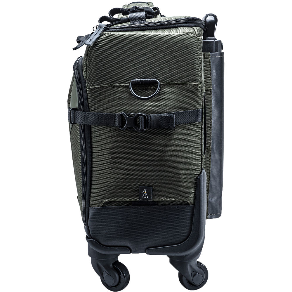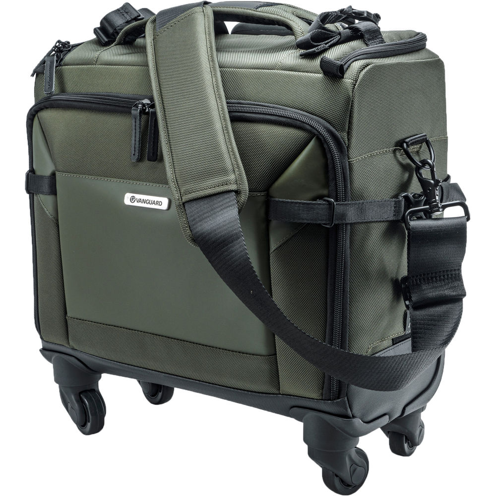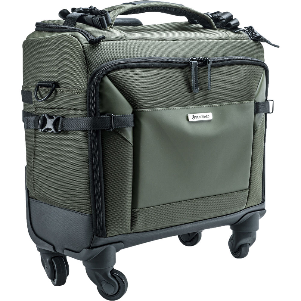 The Vanguard VEO SELECT 42T Camera Trolley Bag – Green is an incognito pilot trolley bag designed for professional photographers and travelers. It meets strict airline carry-on requirements* and accommodates 1-2 DSLR cameras with attached lenses, 3-4 extra lenses (up to 300mm f/2.8), a flash, accessories, and even small video gear or a drone. It also holds a 15” laptop, a 9.7” tablet, and a tripod, making it a versatile solution for on-the-go photography.