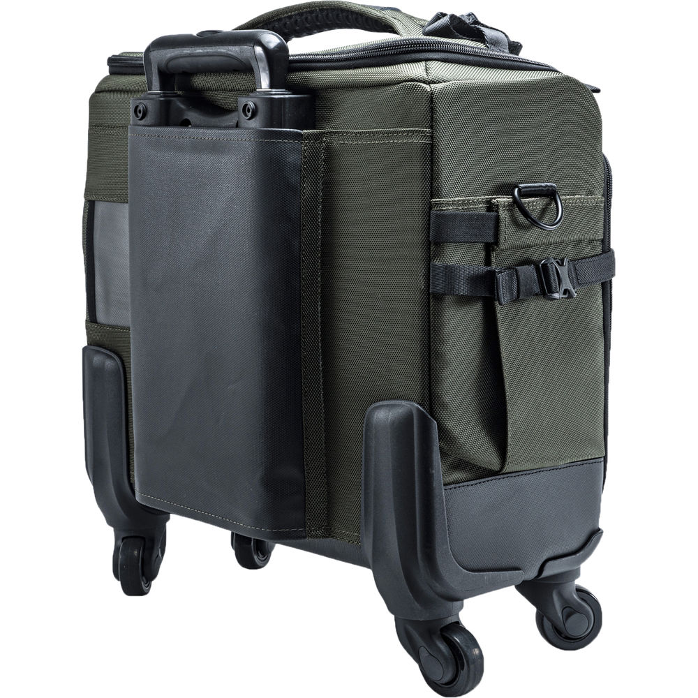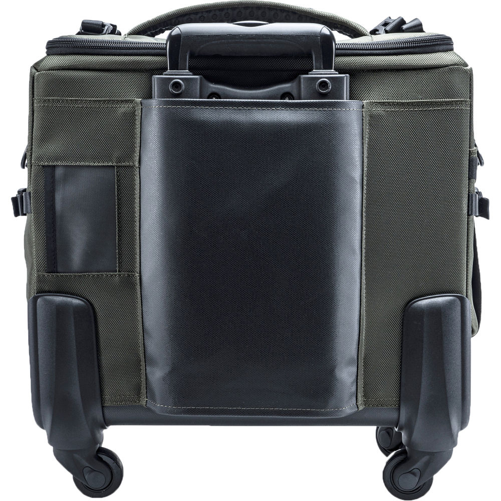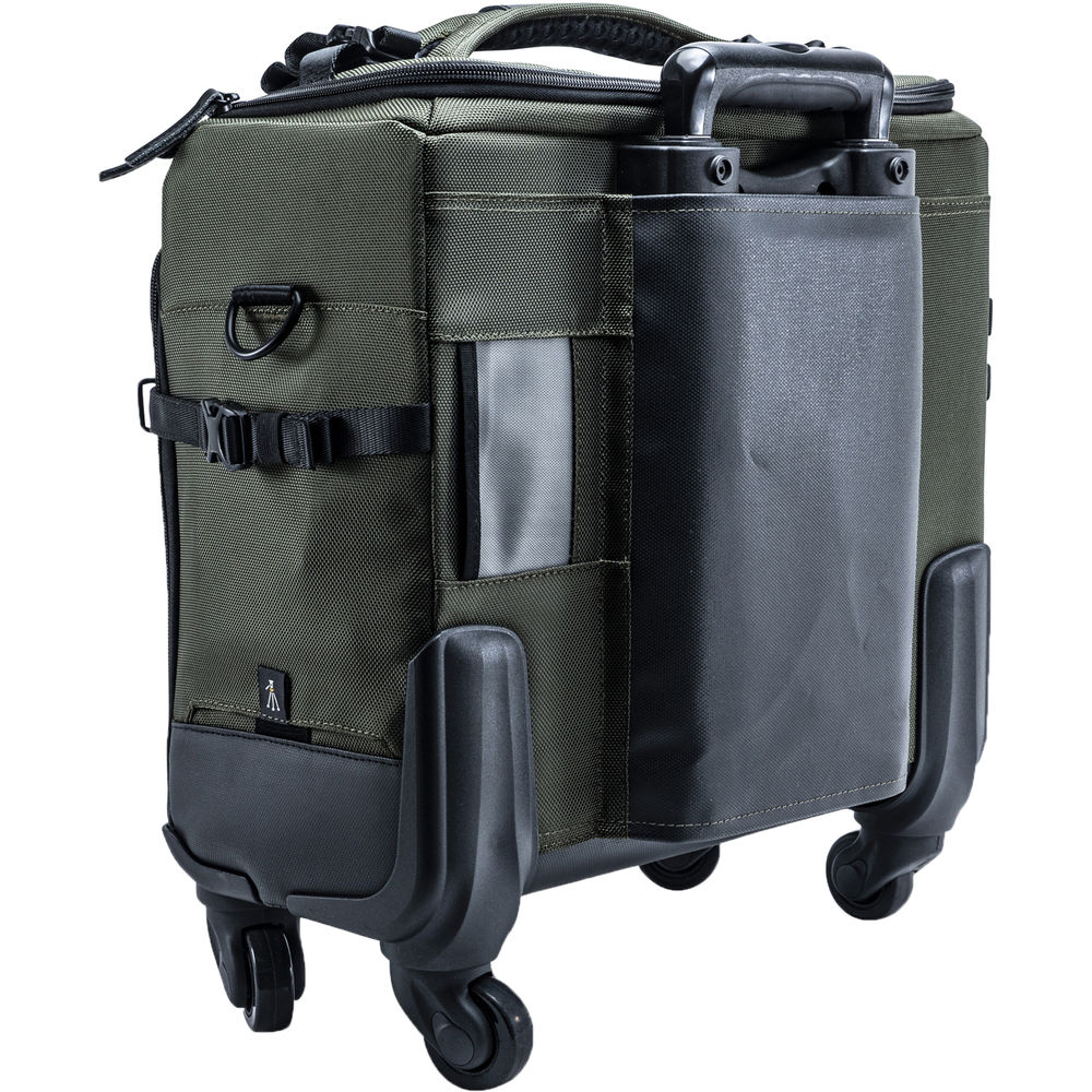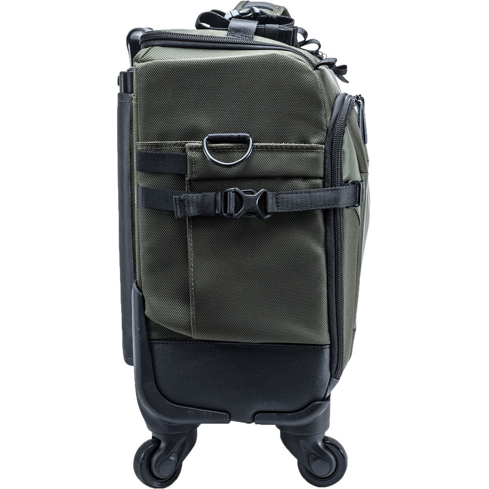 The Vanguard VEO SELECT 42T Camera Trolley Bag – Green is an incognito pilot trolley bag designed for professional photographers and travelers. It meets strict airline carry-on requirements* and accommodates 1-2 DSLR cameras with attached lenses, 3-4 extra lenses (up to 300mm f/2.8), a flash, accessories, and even small video gear or a drone. It also holds a 15” laptop, a 9.7” tablet, and a tripod, making it a versatile solution for on-the-go photography.