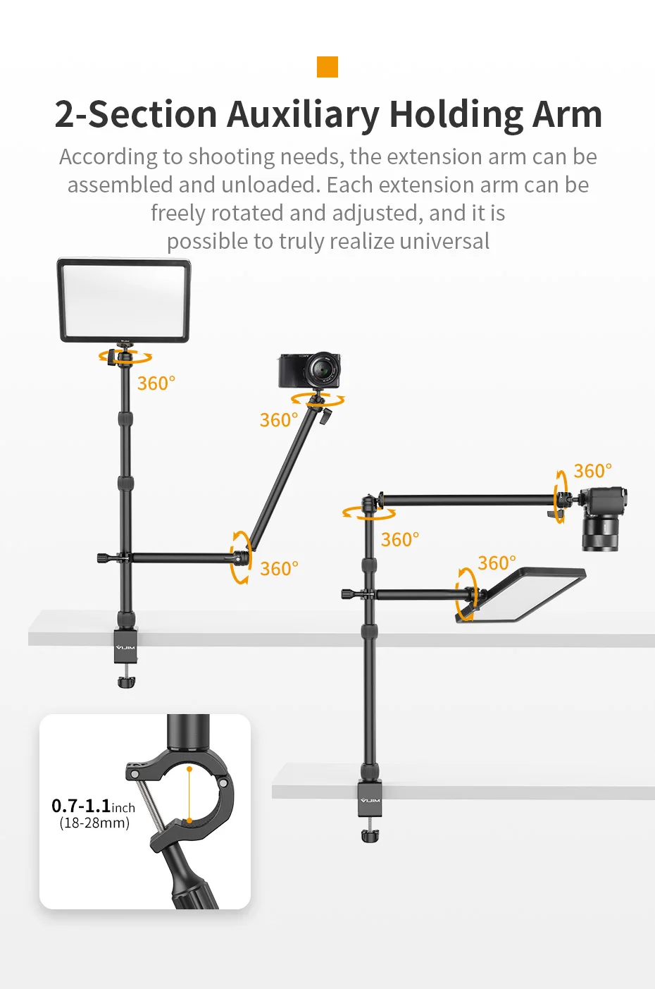 2-Section Arm with Flexibility: Flexible arms 0.7-11 inches, fit most stands and tripods.