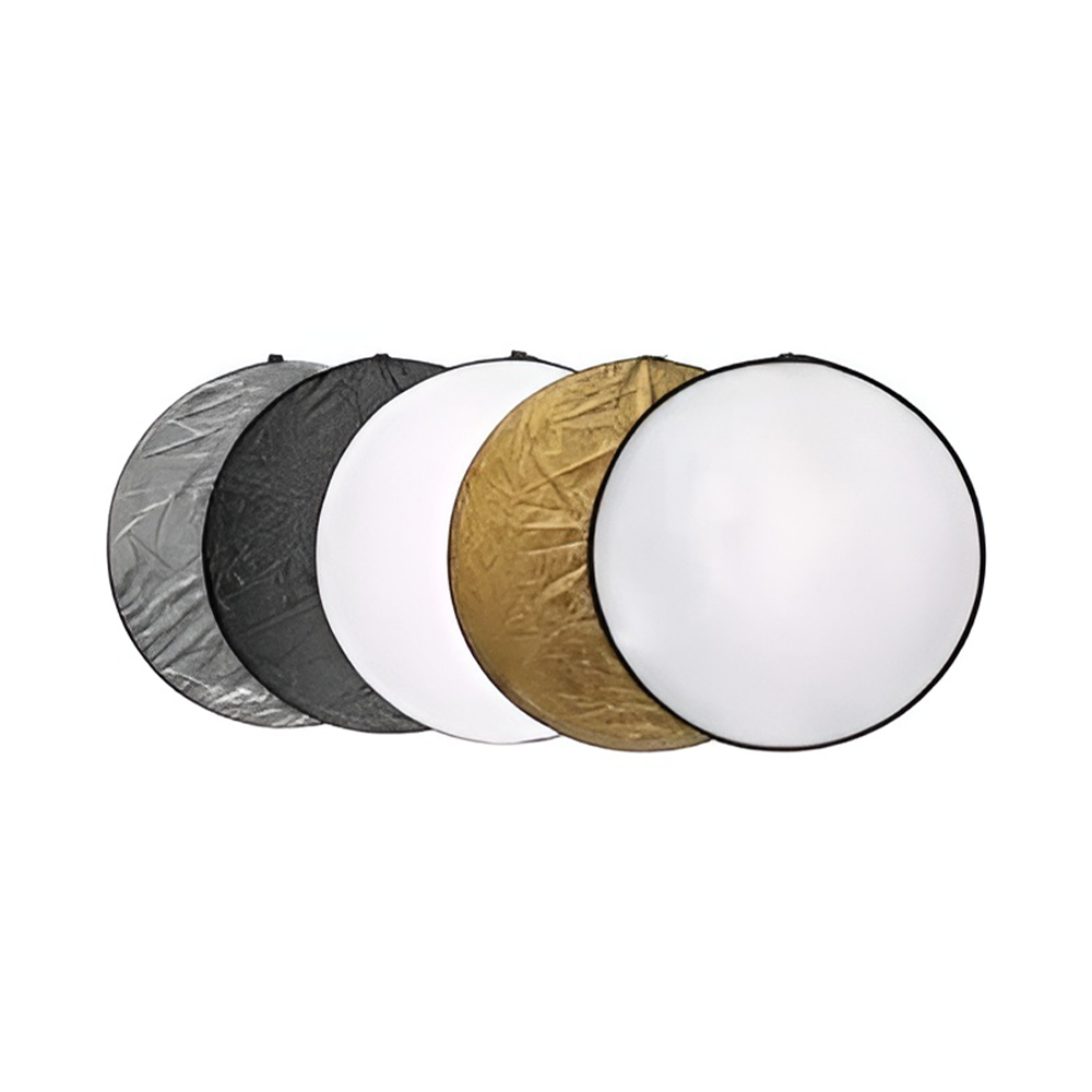 This all-in-one reflector features five different surfaces to adapt to a wide range of lighting scenarios. The silver surface enhances contrast and highlights, while the gold surface adds warm, flattering tones to skin. The white surface produces a neutral color temperature, the black surface blocks unwanted light, and the translucent diffuser softens harsh light for a smoother, shadow-free look. With its flexible functionality and lightweight design, this reflector is an essential tool for creative lighting control.