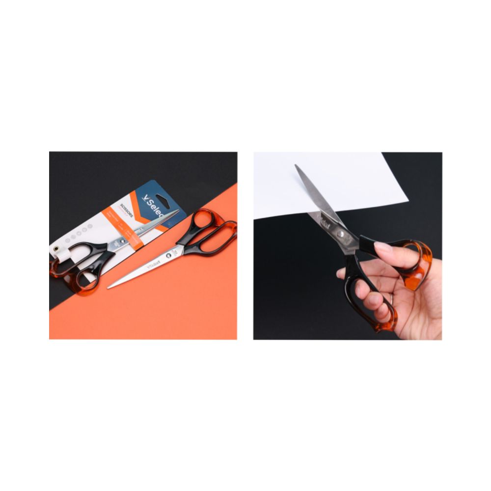 The VSelect SCISSORS 210 mm (Model VS195828) are a versatile, everyday-use cutting tool designed for home, office or school tasks. With a full 210 mm length, these scissors are sized for comfortable grip and precise cutting of paper, light cardstock, fabric or general materials. A reliable choice for users needing a standard-sized pair with balanced performance.