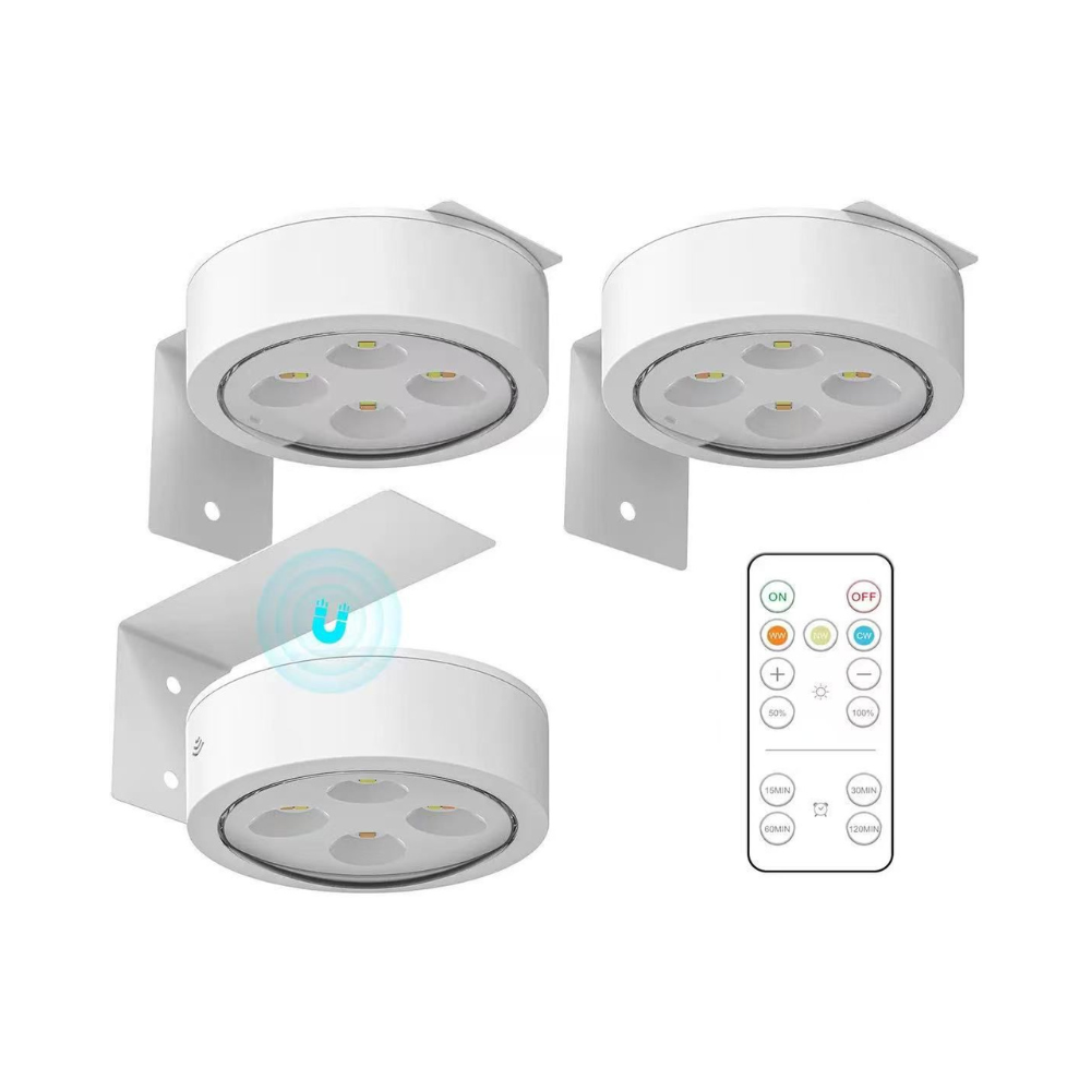 The Wall Mounted Magnetic Light Set Of 3 are a convenient and modern solution for illuminating artwork, photo frames, posters, and wall décor without the need for wiring. Designed for easy installation, these battery-operated lights feature a magnetic mounting system that allows quick attachment and removal. With adjustable brightness, multiple light color modes, and remote control operation, they provide flexible lighting to suit different ambiances. Ideal for living rooms, bedrooms, galleries, offices, or any space where accent lighting is needed, this set combines practicality with a clean, minimalist design.