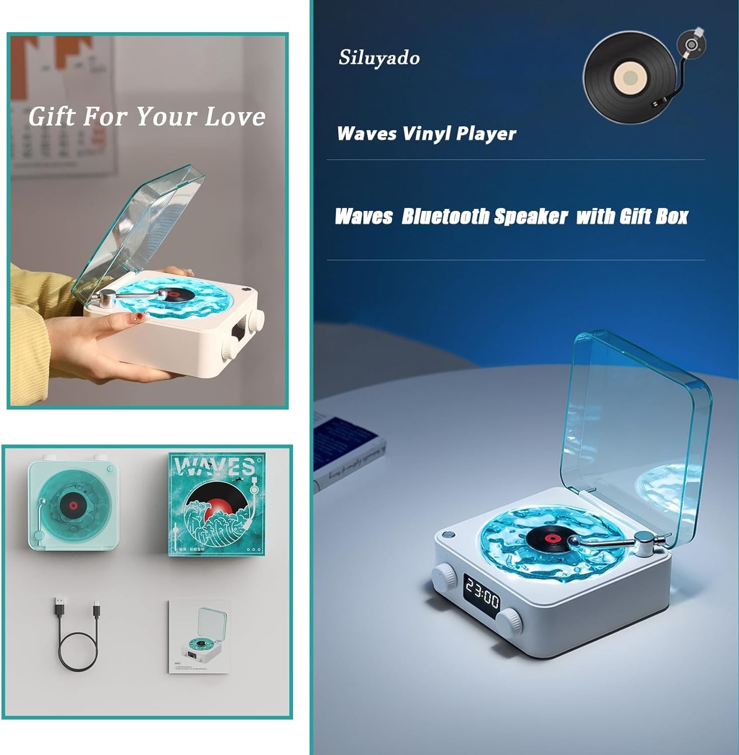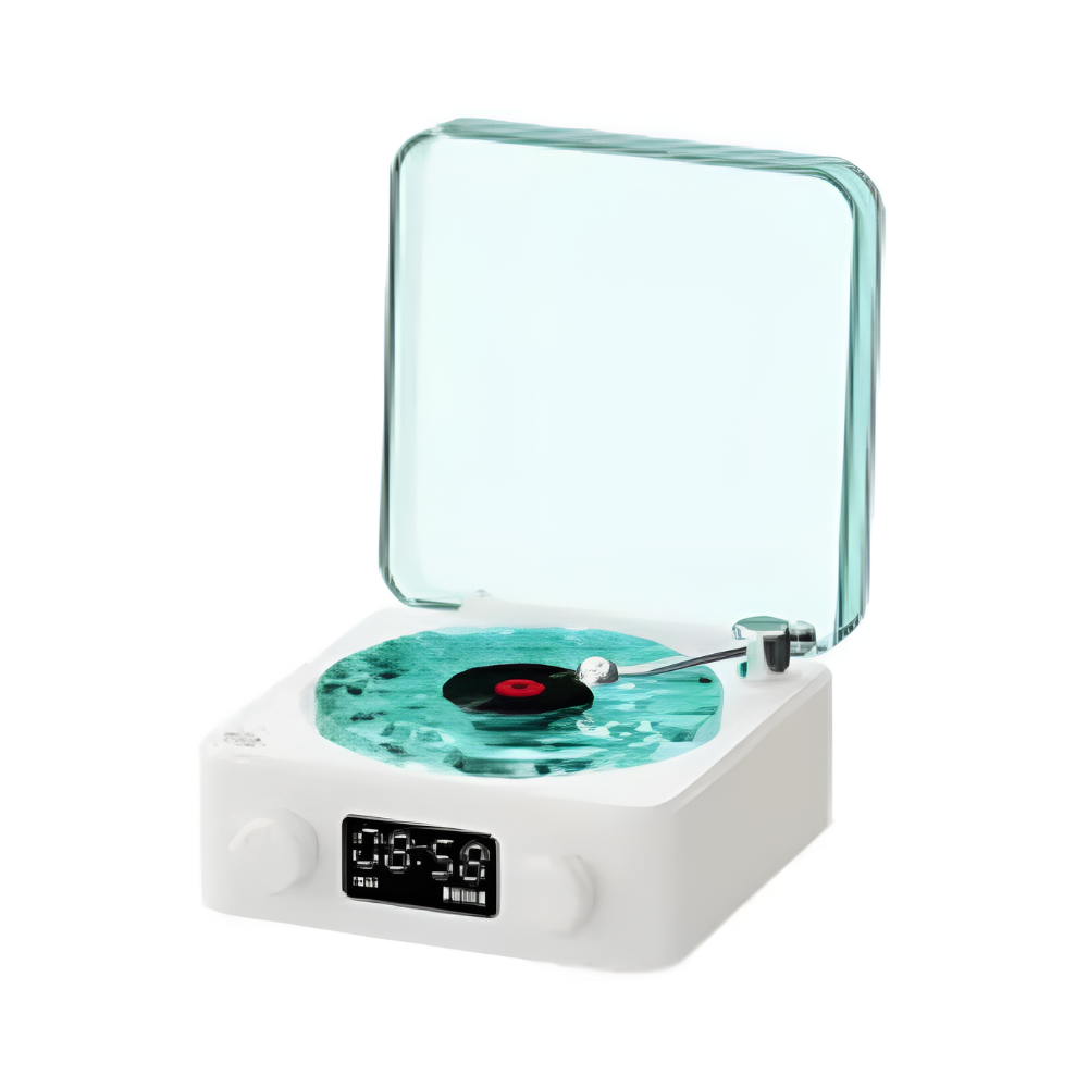 The White Ocean Portable Bluetooth Speaker combines timeless aesthetics with modern features, delivering a uniquely immersive audio experience. Its transparent water ripple turntable design evokes a classic phonograph while offering the charm of a modern art piece. Compact and stylish, it’s perfect for desks, side tables or as a gift for music lovers with a taste for retro flair.