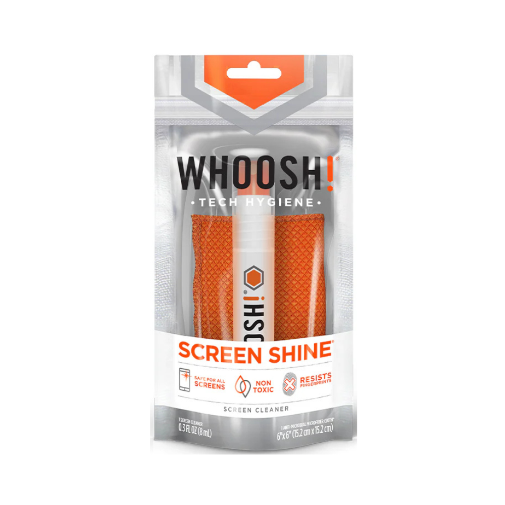 The WHOOSH! Screen Shine Pocket (8ml) is a compact and powerful screen cleaner designed to keep your devices spotless wherever you go. This pocket-sized spray safely cleans and polishes all screens, removing fingerprints, oils, and smudges without streaks or residue.