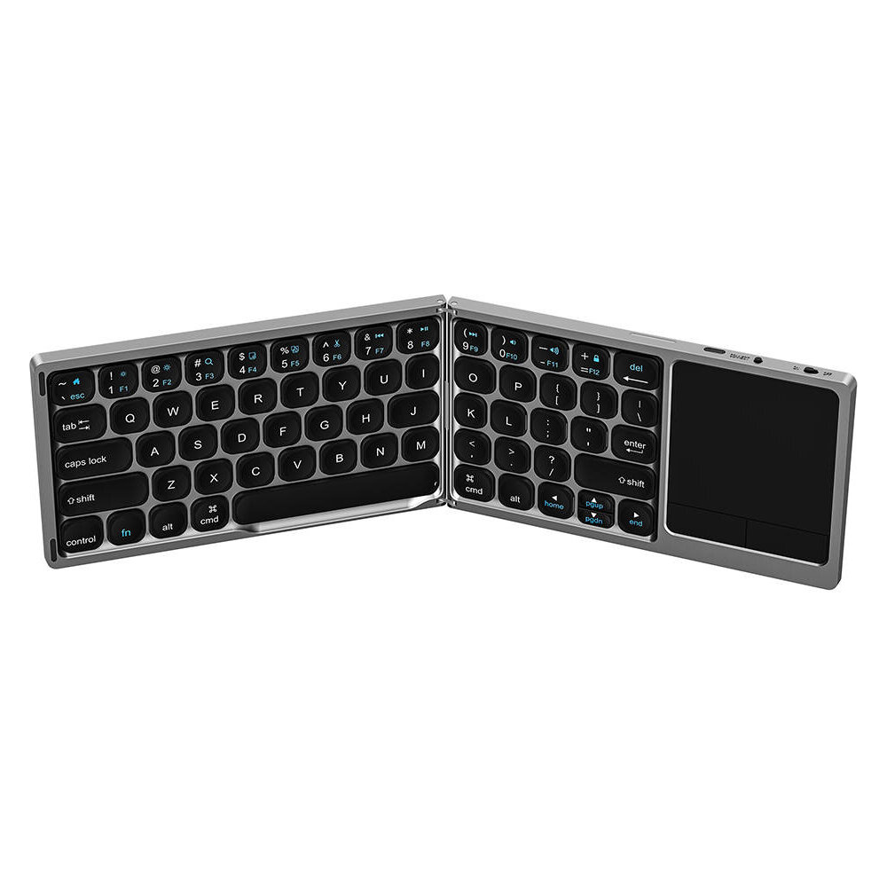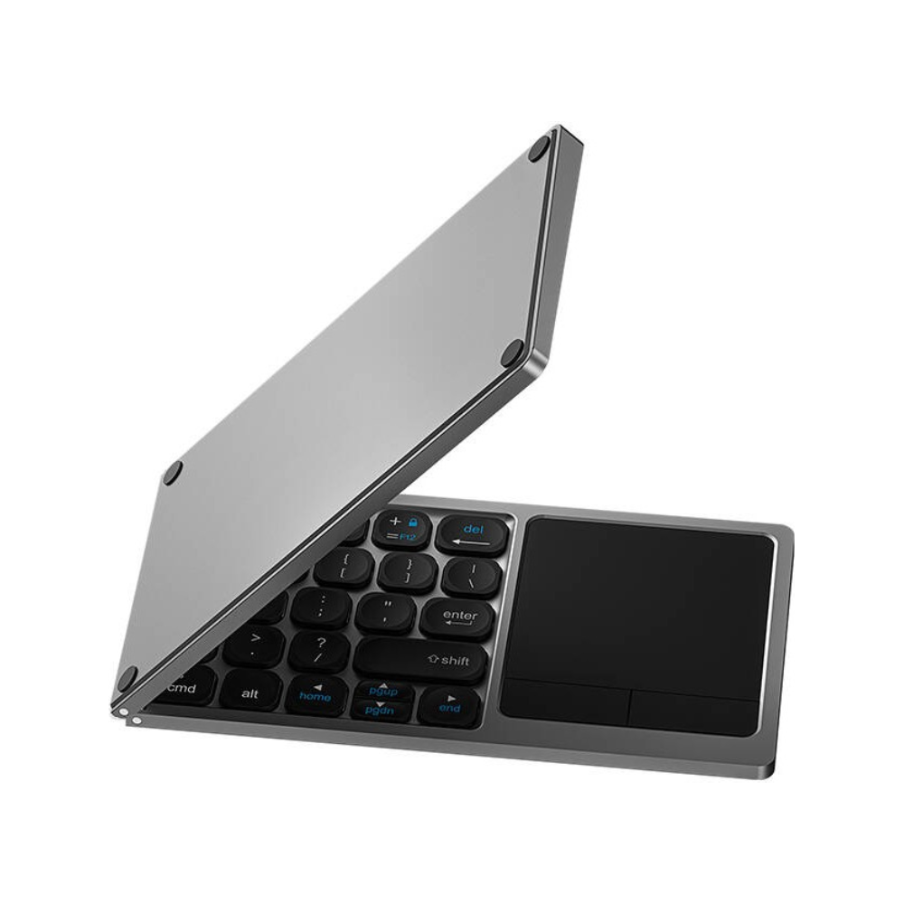 The WiWU FMK‑04 Foldable Bluetooth Keyboard is a portable, rechargeable wireless keyboard with an integrated touchpad, perfect for mobile productivity and remote work. Featuring a compact foldable design, it easily fits into bags and backpacks, making it ideal for travel, office, and home use. The durable construction combines aluminum alloy with quality plastic for strength without excess weight. Bluetooth connectivity ensures seamless pairing with a wide range of devices—including Windows, macOS, Android, and iOS tablets, smartphones, and laptops—while the built‑in touchpad eliminates the need for a separate mouse, enhancing convenience on the go. A long‑lasting rechargeable battery provides hours of typing on a single charge and extended standby time when not in use.