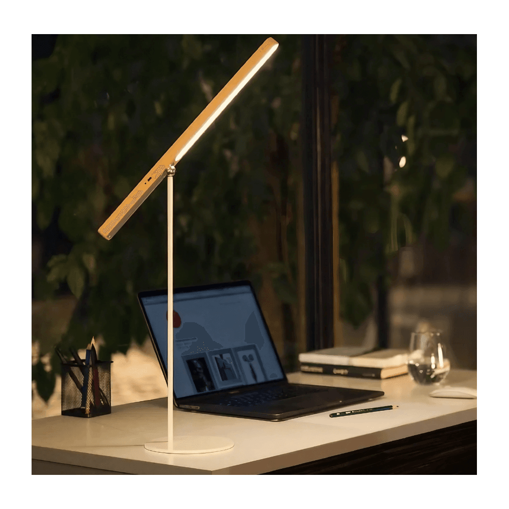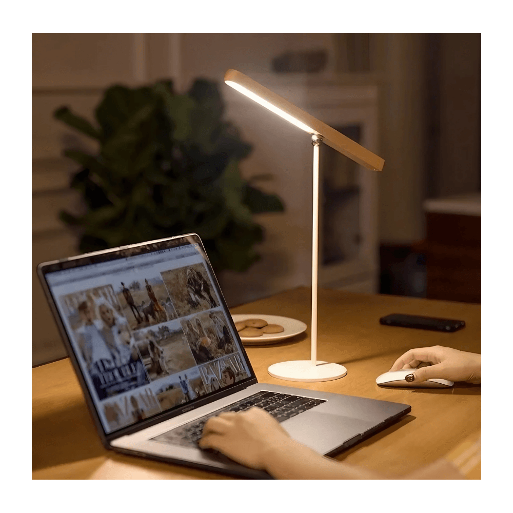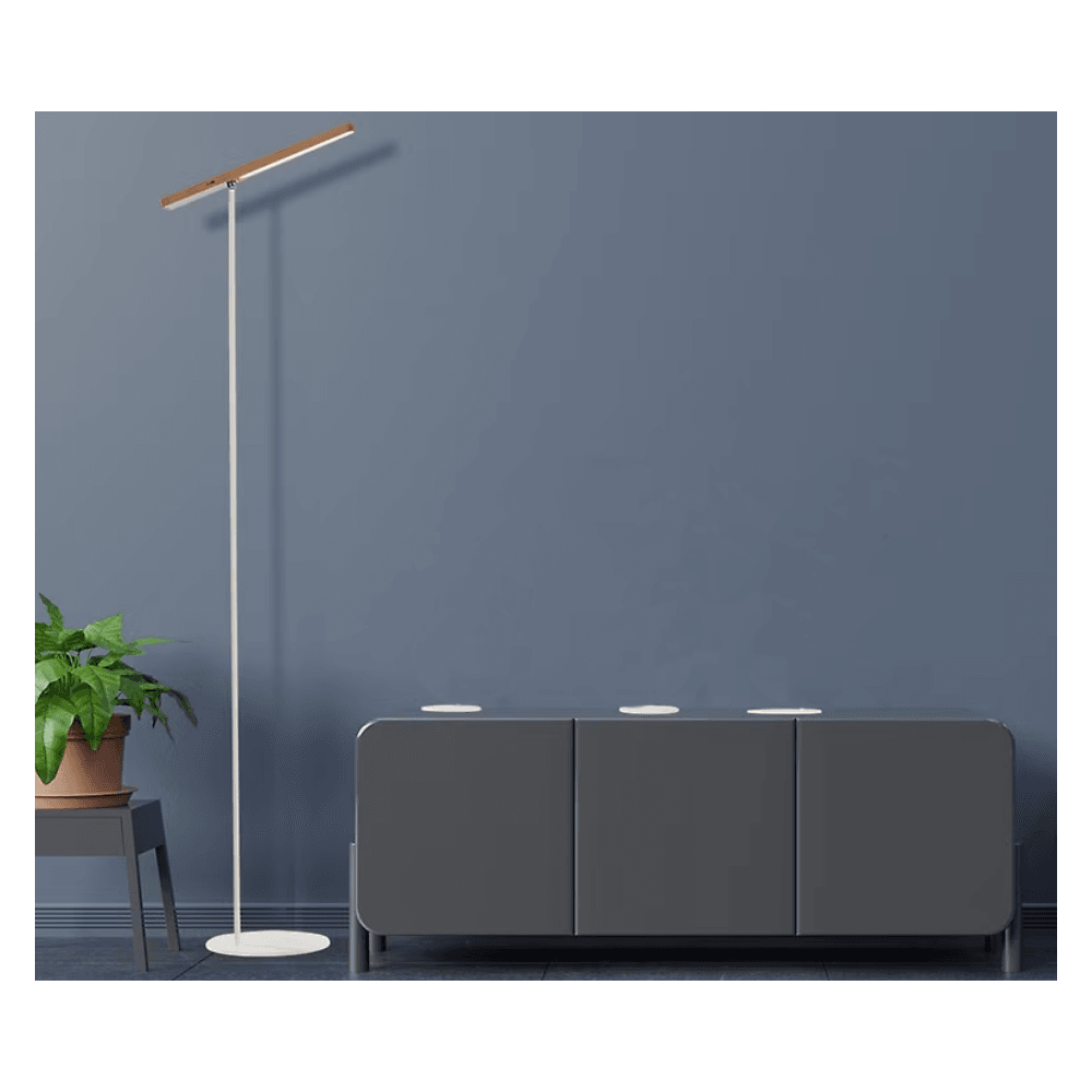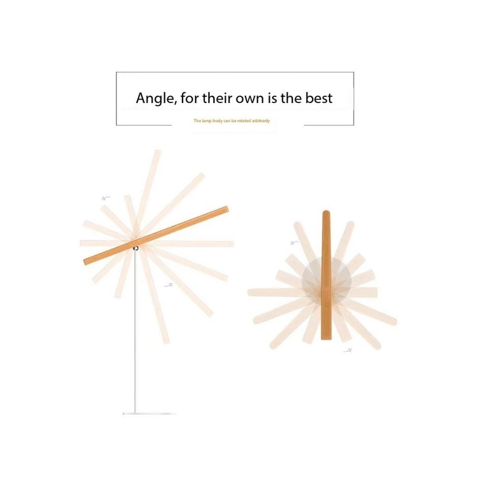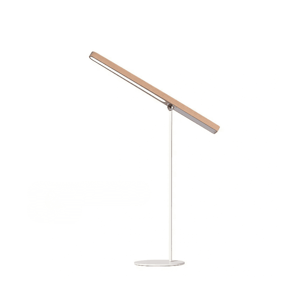 – This lamp combines a sleek, modern style with versatile functionality. Made from iron and wood, this lamp is durable and visually appealing. Its shadeless shape allows for a bright and even light distribution, perfect for reading, studying, and working.