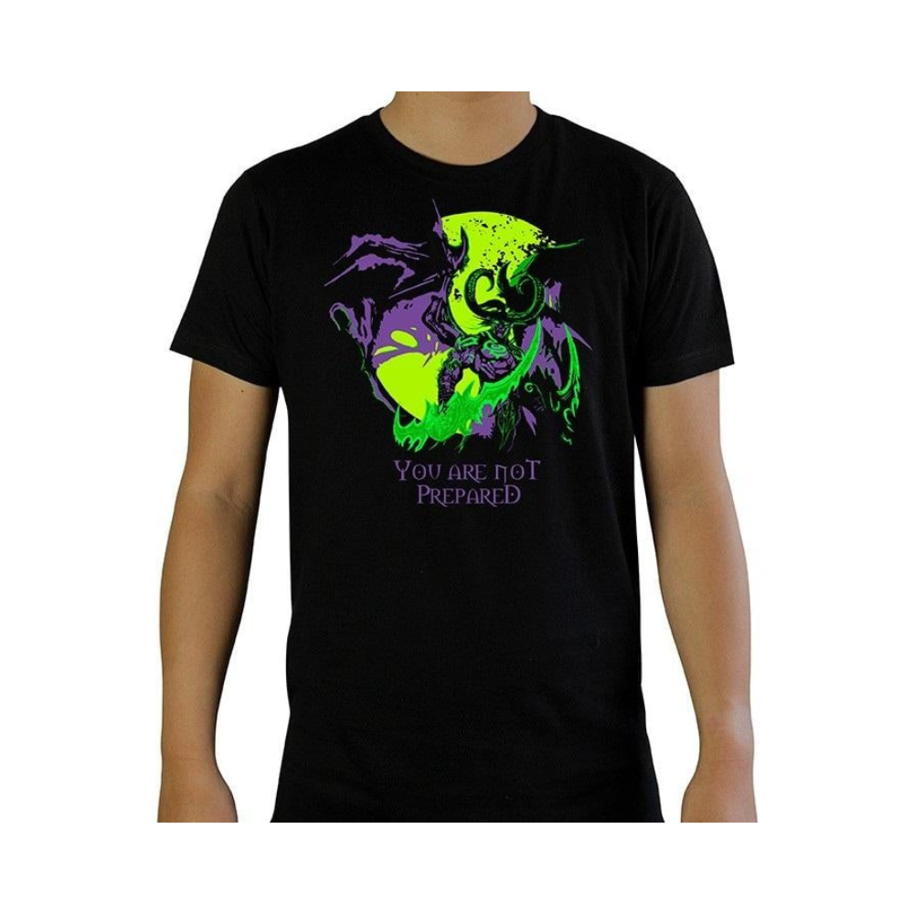 The WORLD OF WARCRAFT – “You Are Not Prepared” Men’s T-Shirt is an officially licensed piece from ABYstyle, tailored for fans of Azeroth. This striking black tee features the bold proclamation “You’re not ready!”, immortalizing Illidan’s iconic challenge. Made of 100% cotton with a 150 g/m² fabric weight, it delivers everyday comfort and lasting wear. The tubular cut and double-layered crew neck in 1×1 rib ensure a clean, streamlined silhouette.