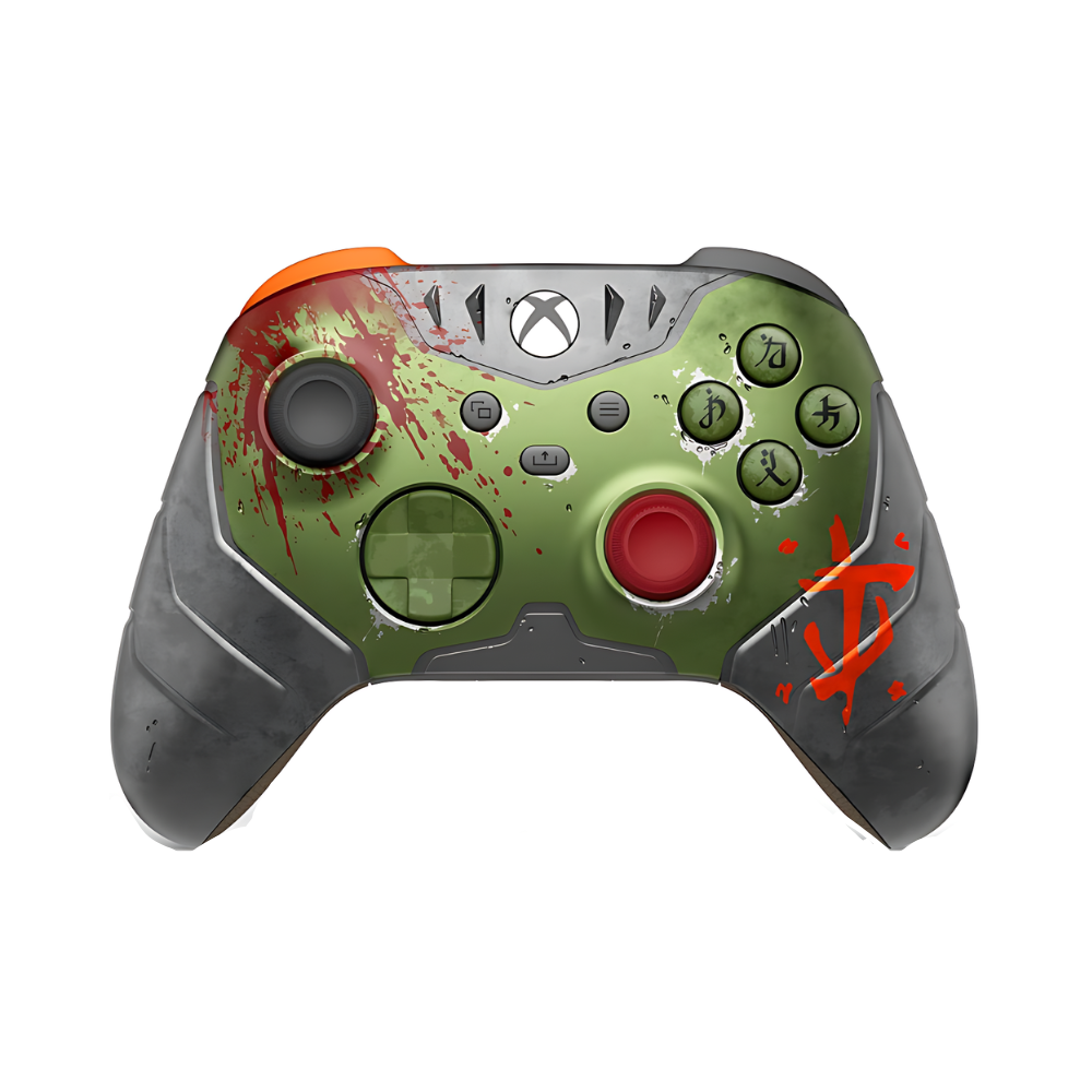 Arm yourself with the DOOM: The Dark Ages Limited Edition Xbox Wireless Controller, inspired by the legendary DOOM Slayer’s armor. This collectible controller features a matte green finish, 3D silver helmet spikes, and plated sheathing across the top case, capturing the essence of the Slayer’s battle-worn gear. Designed for performance and immersion, it includes rubberized grips with a leather-like texture, a sinister red thumbstick matching the Slayer’s chest port, and green ABXY buttons inscribed in the Sentinel alphabet. The left trigger shines in orange, echoing the DOOM Slayer’s Shield Saw activation. Also includes exclusive downloadable content: the DOOM Slayer Executioner Skin (game sold separately). Equipped with both Xbox Wireless and Bluetooth technology, it’s ready for action on supported consoles, PCs, and cloud-enabled devices.