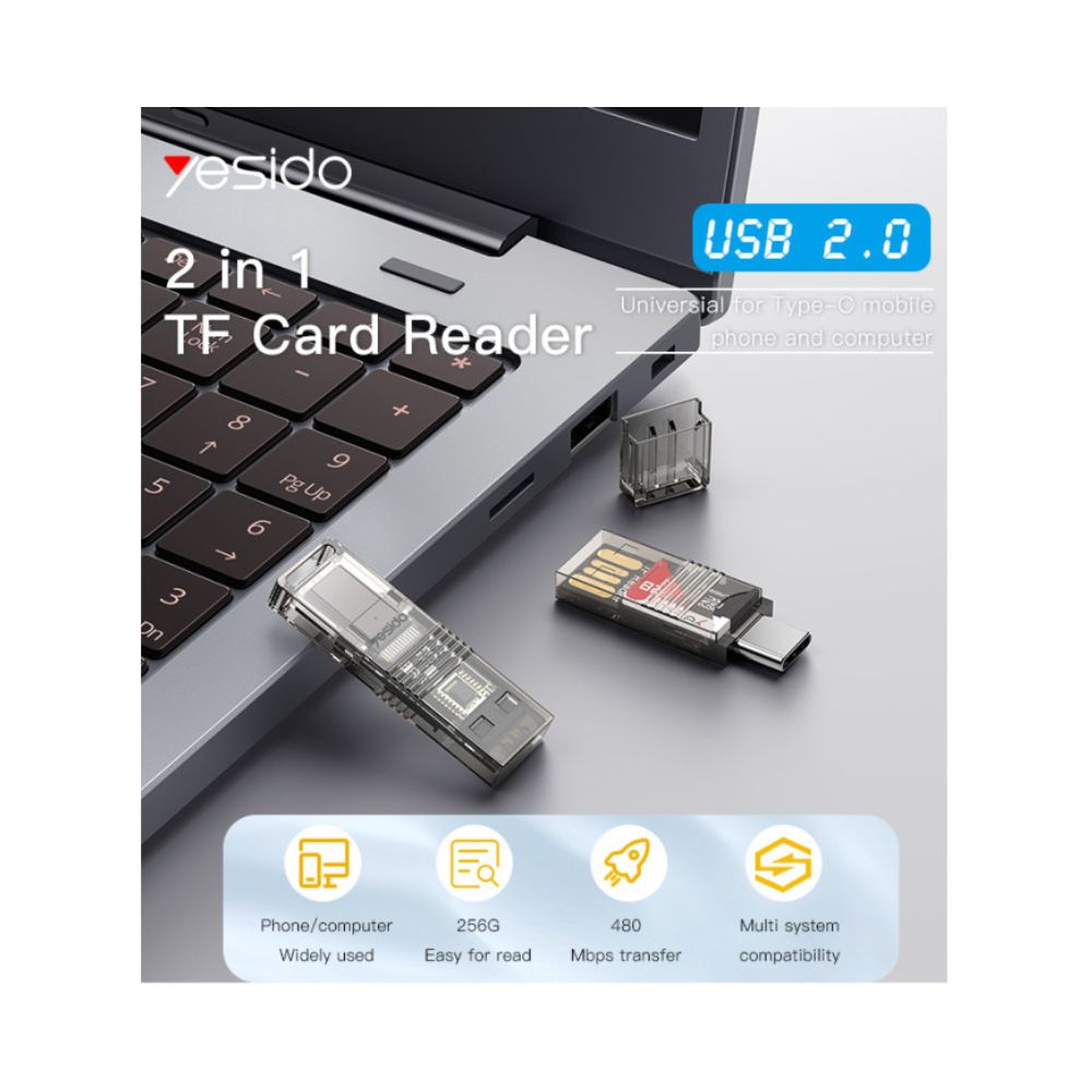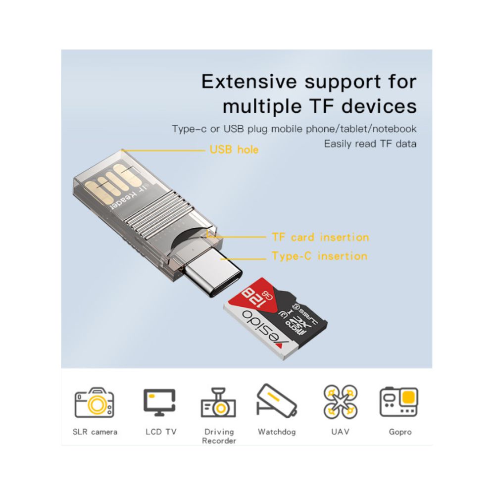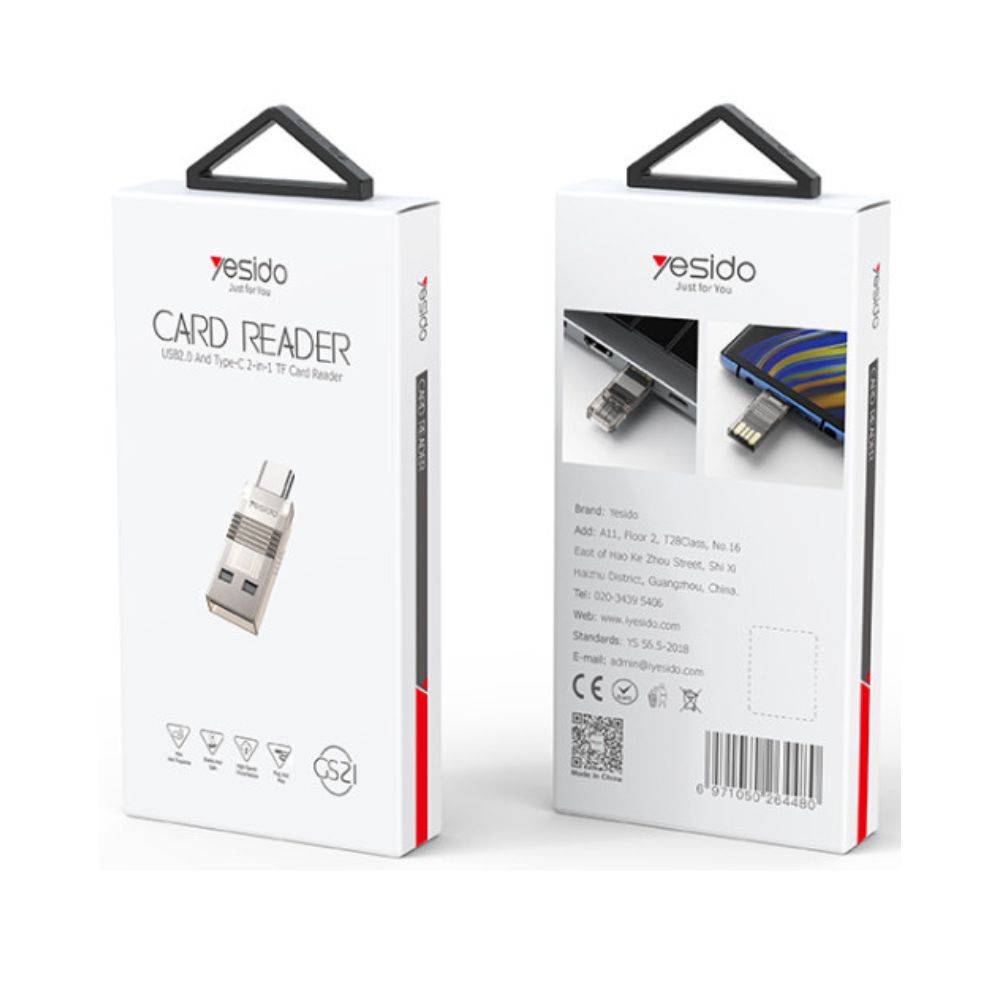 The YESIDO GS21 2-in-1 TF Card Reader is a compact and portable solution for quick and easy data transfer from microSD (TF) cards. Designed with dual connectors—USB-A and USB-C—it ensures wide compatibility across laptops, desktops, phones, and tablets. Its plug-and-play functionality and lightweight build make it an ideal everyday accessory for simple file access on the go.