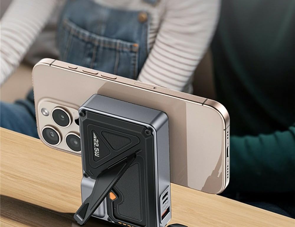 | Compatibility | Smartphones and devices supporting Qi / MagSafe‑style magnetic wireless charging (or via magnetic plate) + devices requiring portable power on the go |